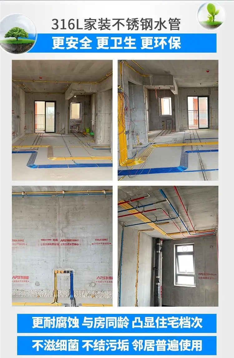 对于普通居民而言,房子要使用几十年,装修也将在几十年内不作改变,所以一种能够与居住年限同步的材料显得相当重要,特别別是水管,因为隐磁在表层以下,维修与更換都是大兴土木的工程。与其在修修补补中破坏装修的整体性,或者在不久的将来还在使用不够健康环保的材料,不如有个超前意识,一次投资,长期受益。不锈钢水管是国际公认的最优饮用水管道,其健康、安全、环保、不结垢、无锈蚀、使用寿命长、经济等优勢,已经引领起管道行业的革命。
